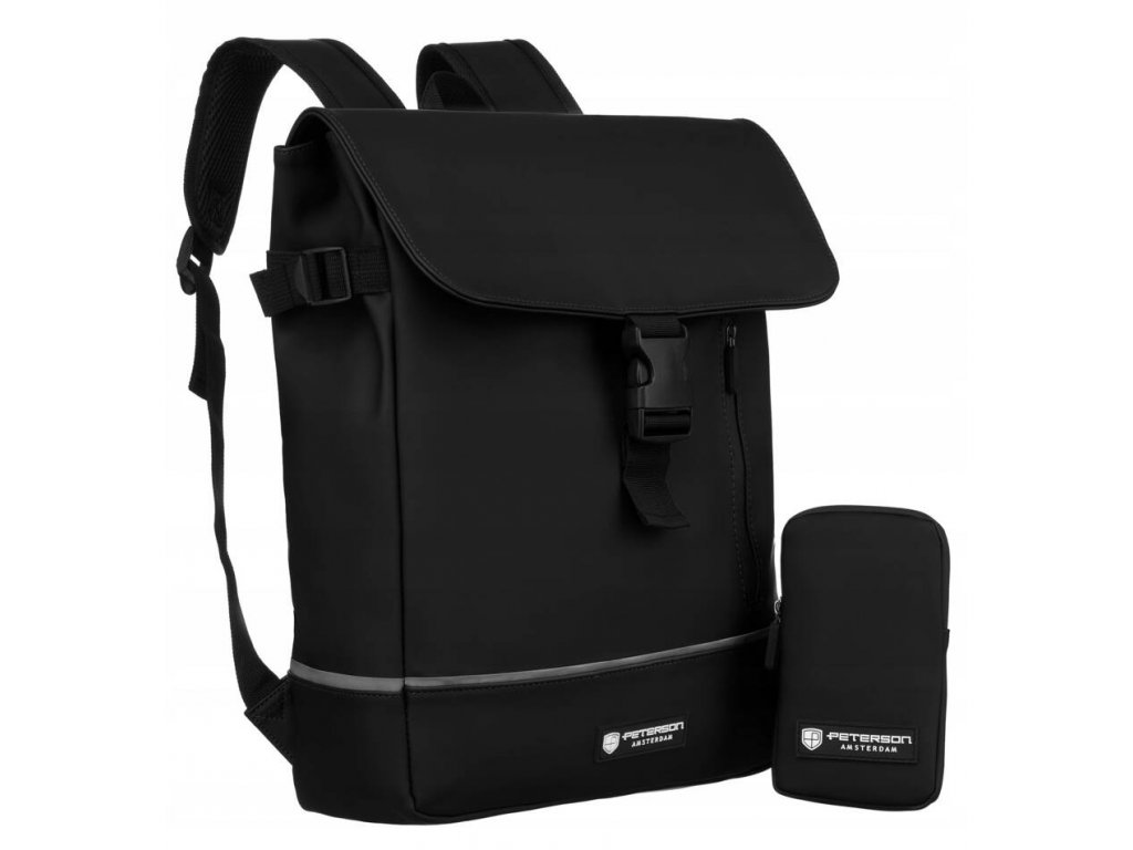 Stylový dámský městský nepromokavý batoh + pouzdro značky Peterson černý. Spolu s batohem obdržíte elegantní pouzdro ze stejného materiálu jako batoh. Pouzdro má voděodolný zip. Tento batoh je dostupný ve více barvách které naleznete ZDE. Kvalitní, pevný a vodě odolný syntetický materiál. Batoh je vhodný pro každodenní použití do města, do školy a na výlety.