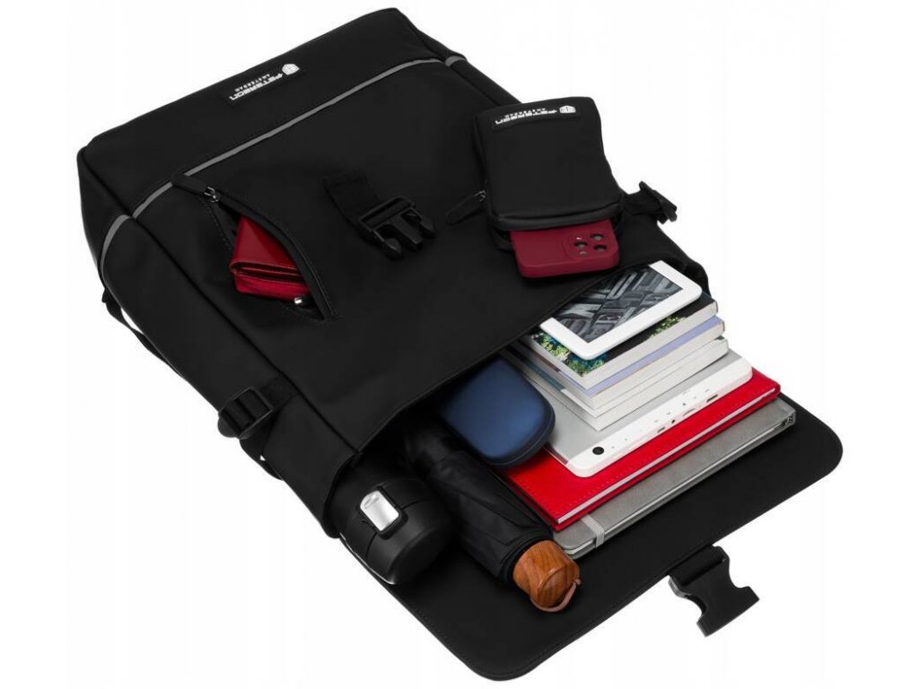 - na zadní straně batohu je bezpečná kapsa uzavíratelná voděodolným zipem, do které můžete uložit peníze, pas, doklady nebo jiné cennosti