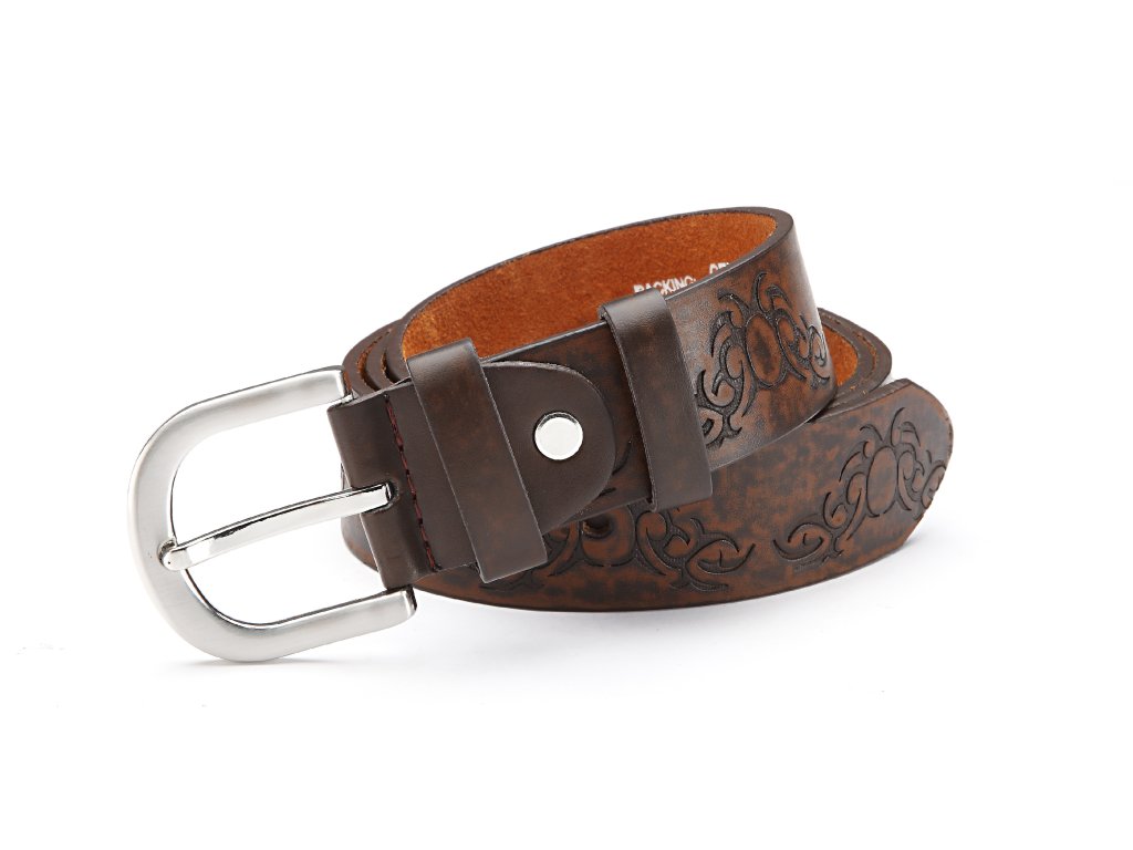 Dámský kožený opasek s ražbou hnědý 10065-2