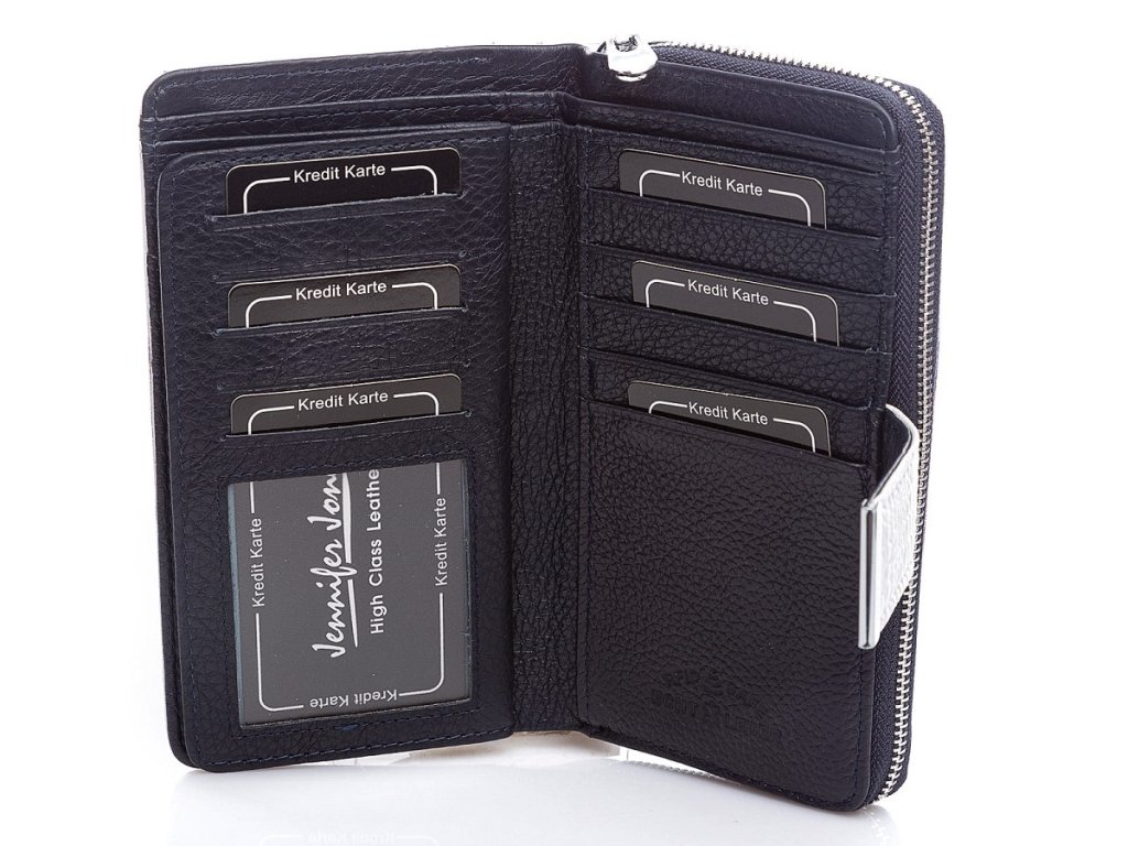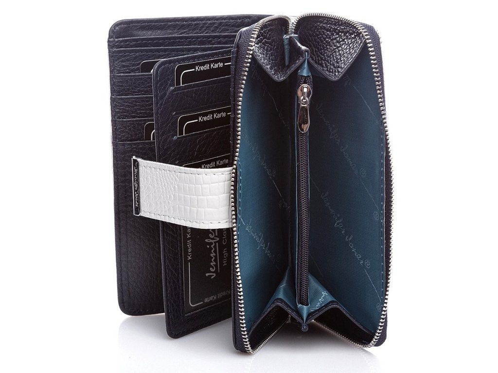 Tato dámská kožená peněženka má dvě samostatná hlavní oddělení. Jedno oddělení je uzavíratelné koženým páskem na patentek. Patentek má dvě polohy. V tomto oddělení naleznete 2 velké přihrádky na bankovky. Do těchto přihrádek bez problémů umístíte bankovky v hodnotě 1000 Kč a to jak vodorovně tak svisle. Dále je v tomto oddělení naleznete 4 velké přihrádky na osobní doklady z nichž 1 je průhledná a 17 přihrádek na platební karty. Druhé hlavní oddělení je uzavíratelné na kovový zip. V tomto oddělení naleznete dvě velké přihrádky na mince které jsou rozdělené kapsičkou na zip.