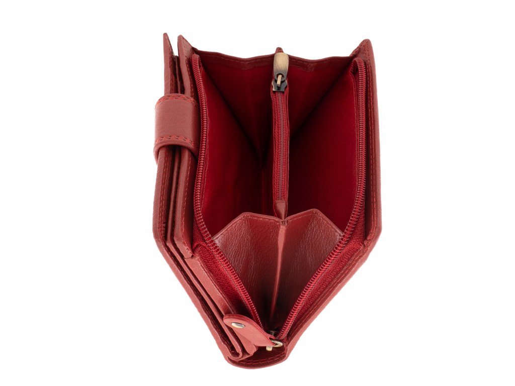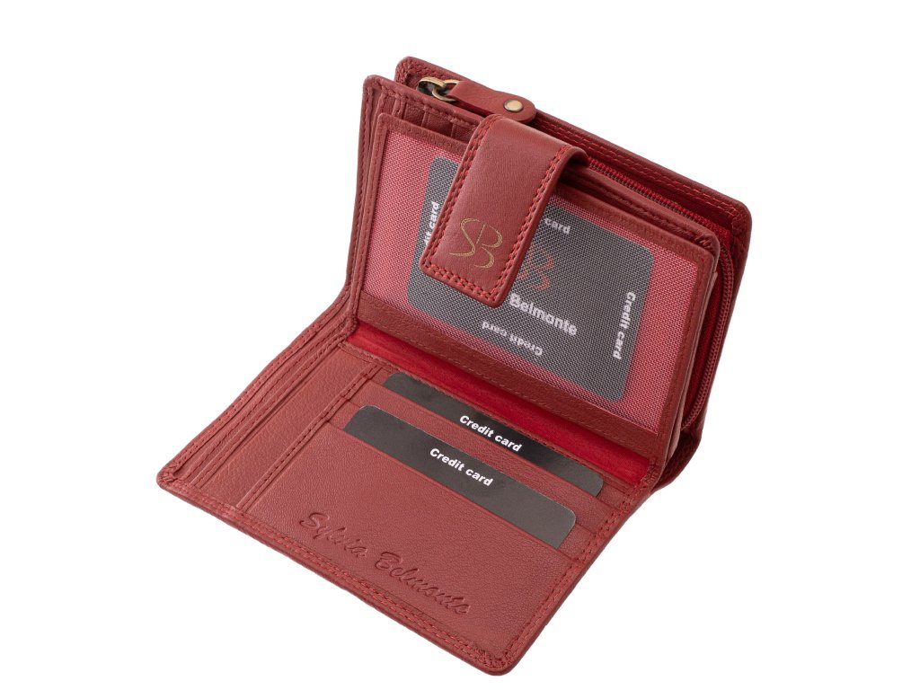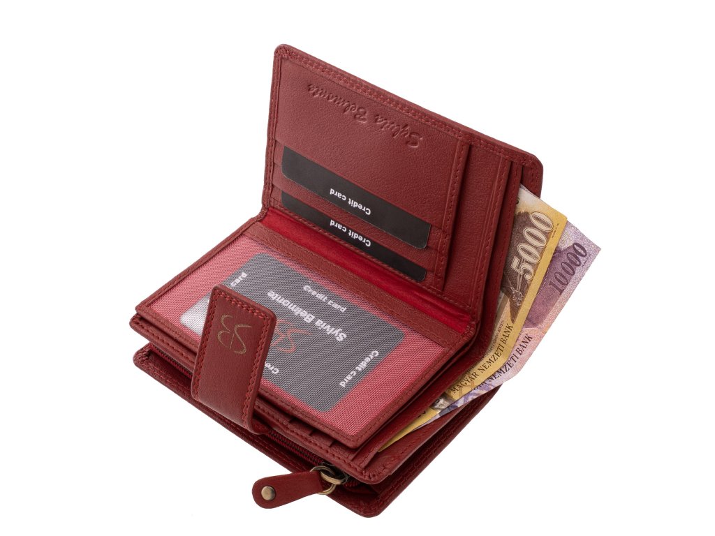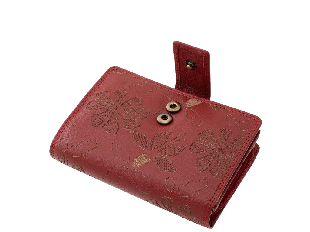 Středně velká dámská peněženka z pravé kůže Sylvia Belmonte červená. Tato značková dámská kožená peněženka kombinuje materiály prémiové kvality, módní laserem vyřezávaný květinový design a praktické vnitřní uspořádání. Je k dispozici v módních, trendy barvách, takže si každý může najít verzi, která nejlépe vyhovuje jeho stylu. Dostupné barevné varianty naleznete ZDE. Praktický design pro každodenní pohodlí. Dvojitá přepínací spona umožňuje bezpečné a flexibilní uzavření, i když je peněženka plná. Samostatná přihrádka na mince na zip – přihrádku na mince lze použít, aniž byste museli otevírat celou peněženku.