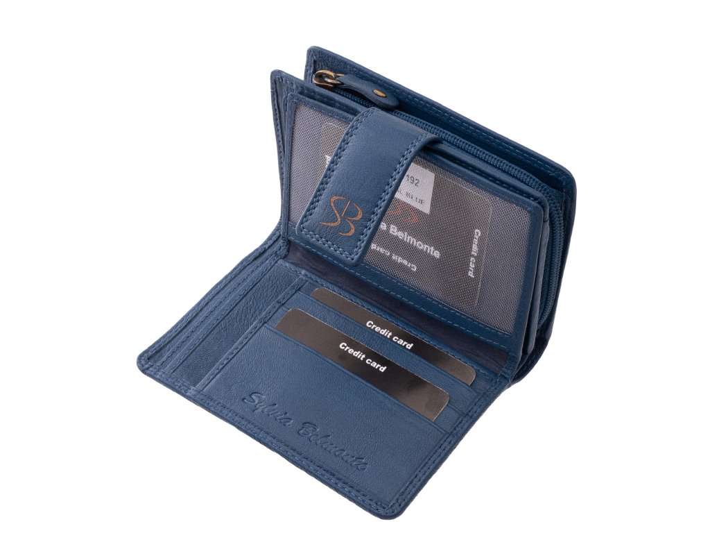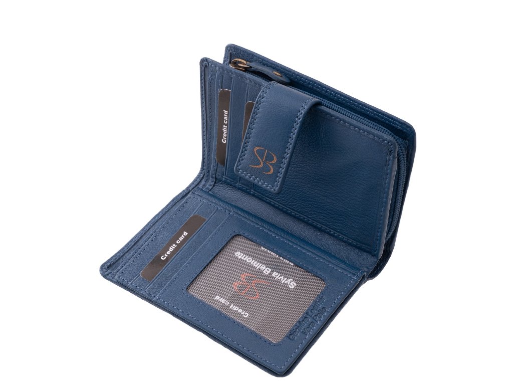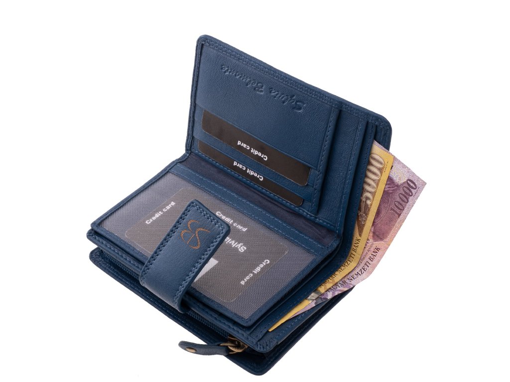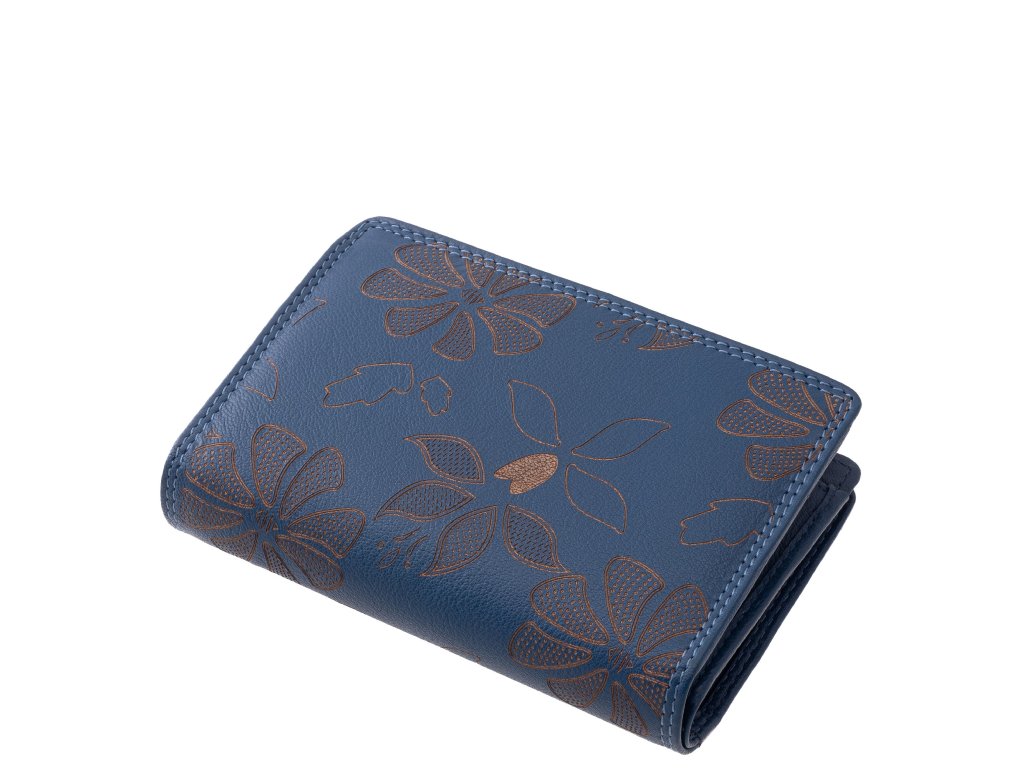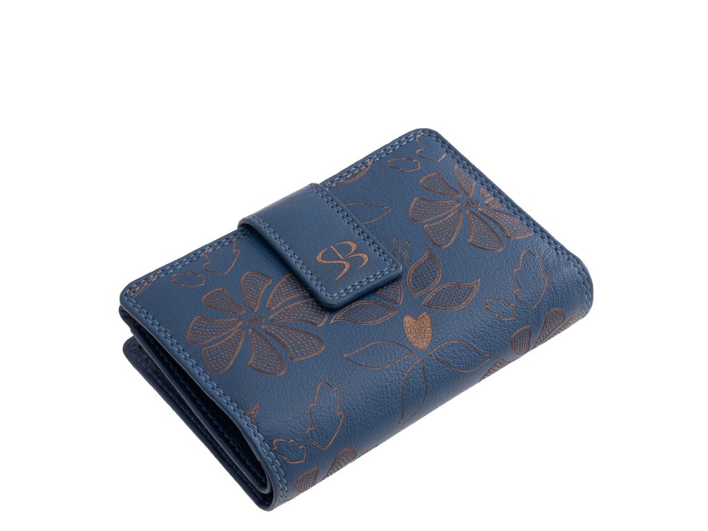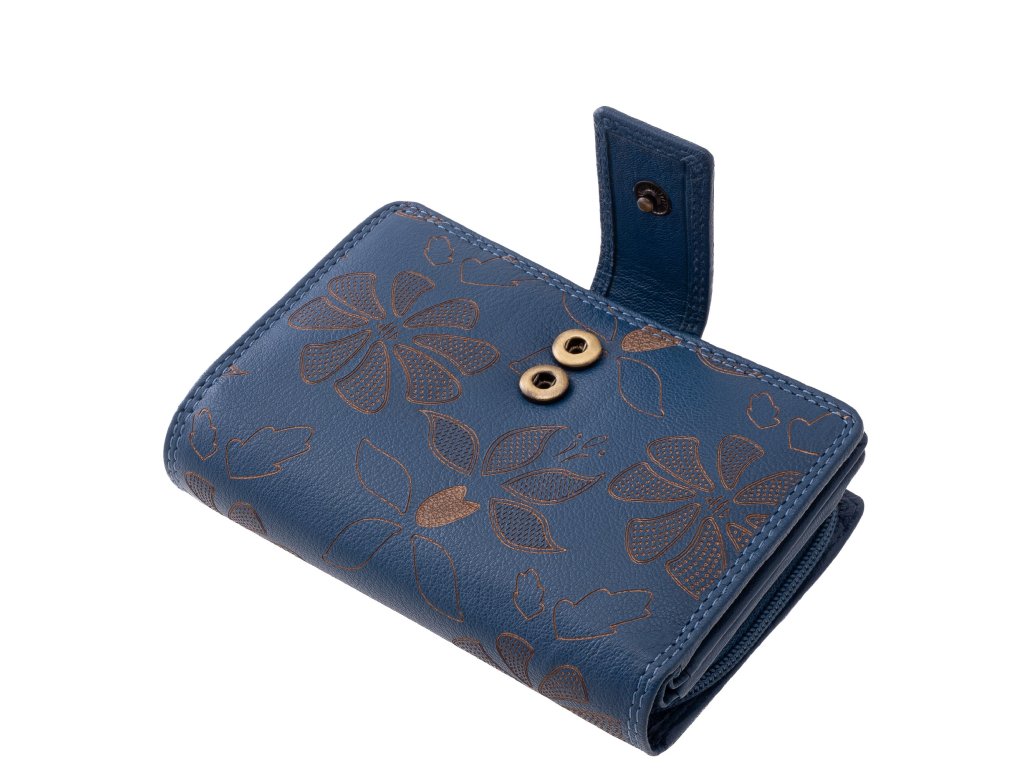 Středně velká dámská peněženka z pravé kůže Sylvia Belmonte modrá. Tato značková dámská kožená peněženka kombinuje materiály prémiové kvality, módní laserem vyřezávaný květinový design a praktické vnitřní uspořádání. Je k dispozici v módních, trendy barvách, takže si každý může najít verzi, která nejlépe vyhovuje jeho stylu. Dostupné barevné varianty naleznete ZDE. Praktický design pro každodenní pohodlí. Dvojitá přepínací spona umožňuje bezpečné a flexibilní uzavření, i když je peněženka plná. Samostatná přihrádka na mince na zip – přihrádku na mince lze použít, aniž byste museli otevírat celou peněženku.
