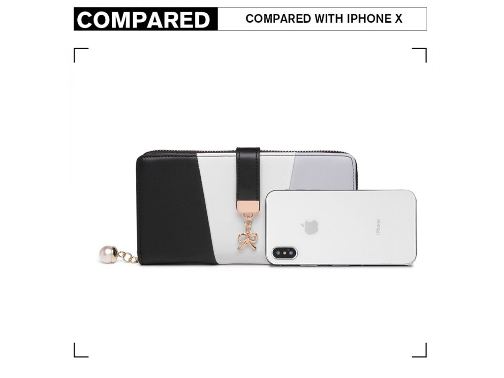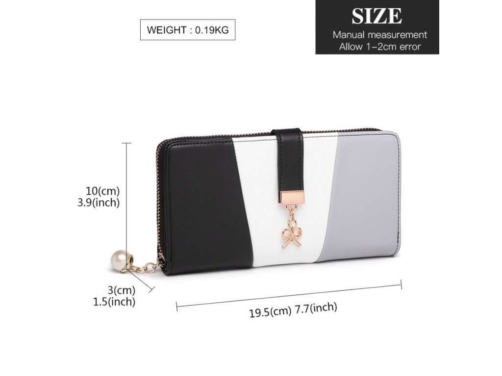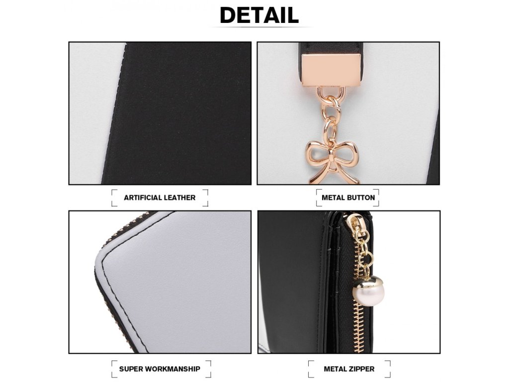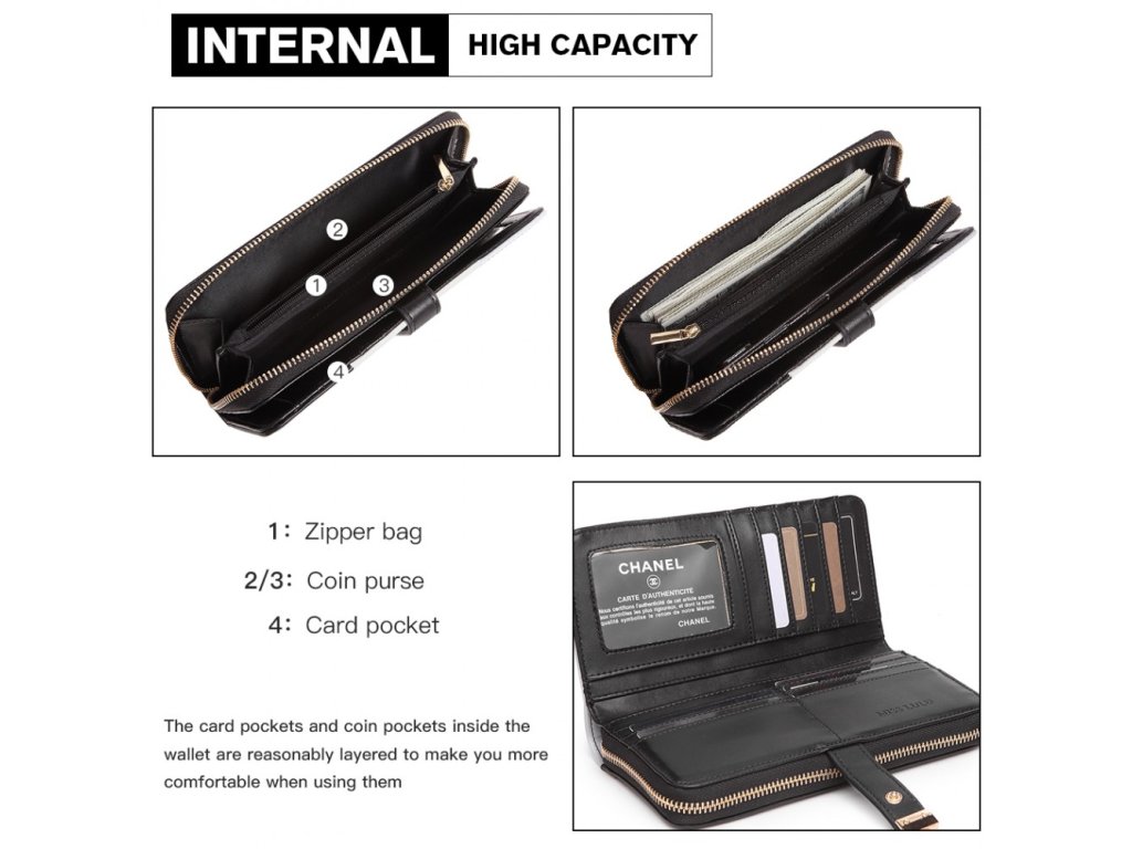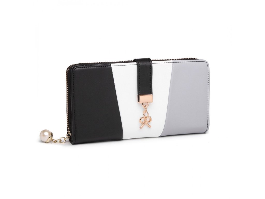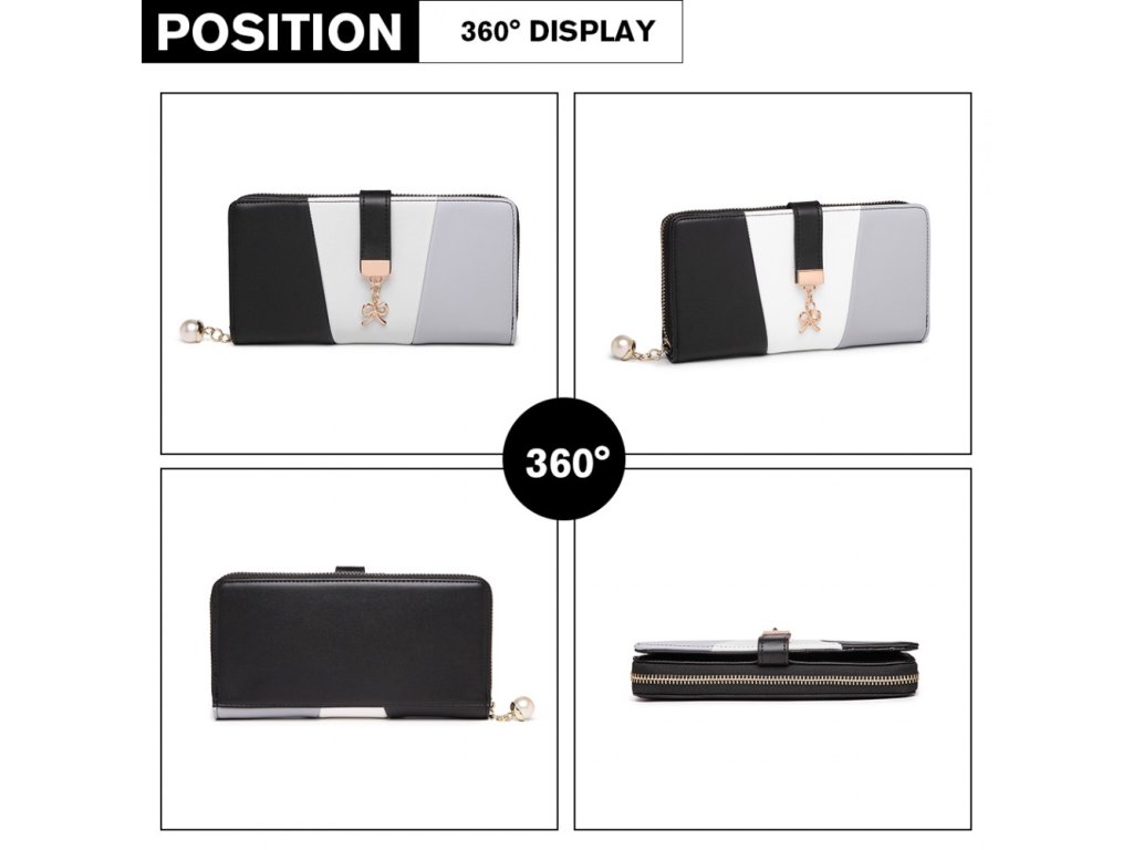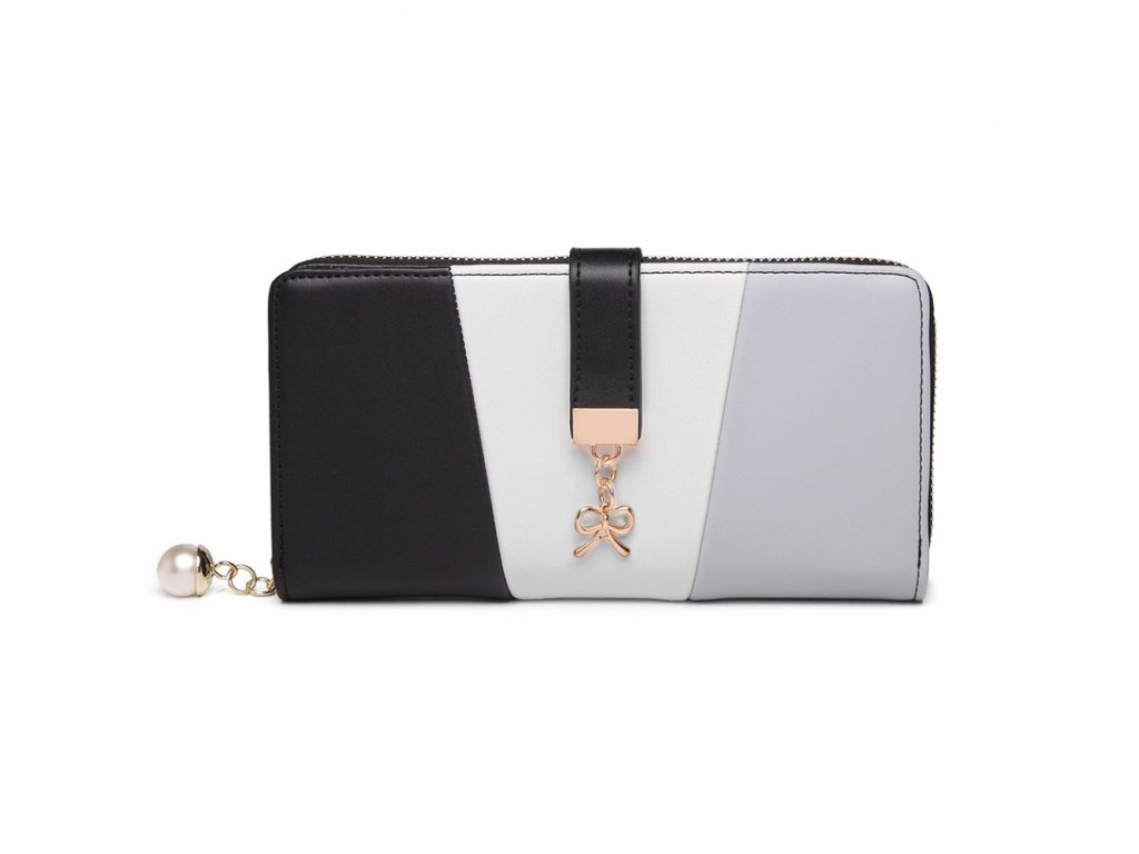 Velká dámská peněženka Miss Lulu černá Multicolor. Velká samostatná přihrádka na mince a bankovky uzavíratelná na zip. Karetní a dokladová část uzavřena koženým páskem na patentek. Materiál umělá kůže. Tato peněženka je dostupná ve více barvách které naleznete ZDE.
