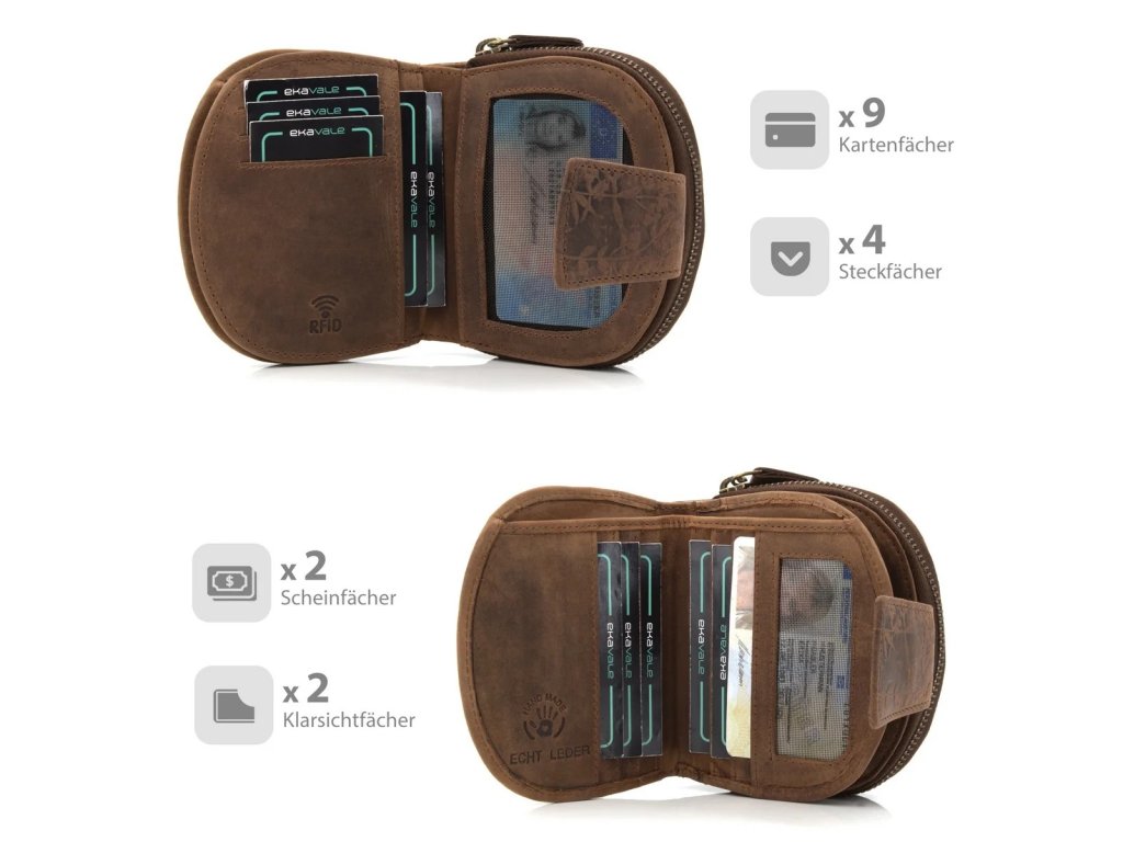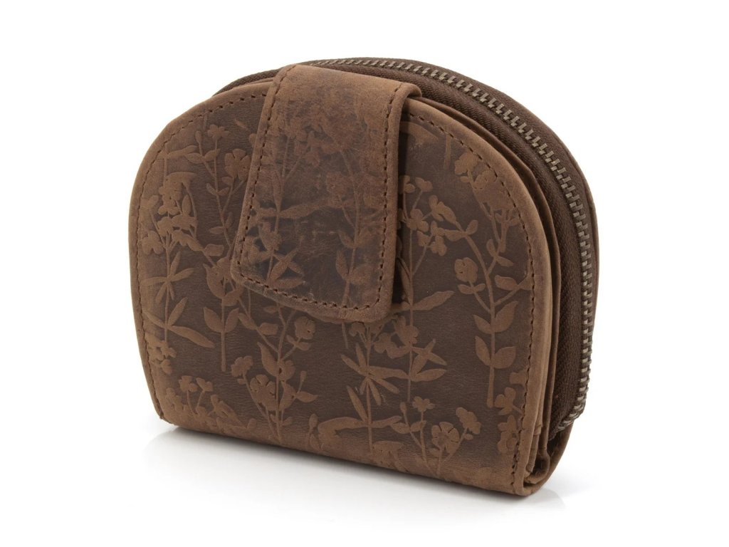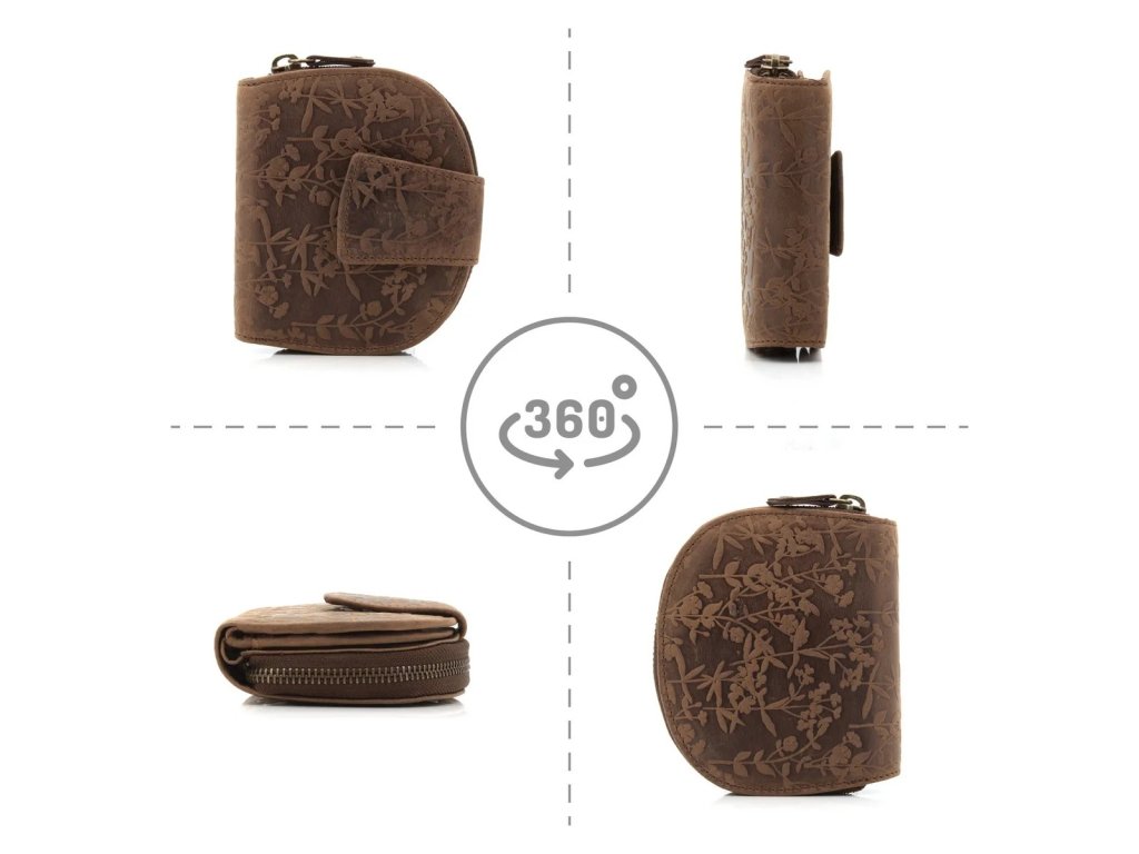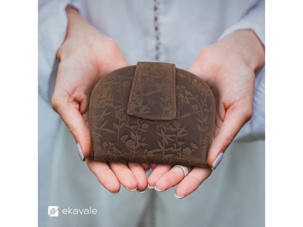 Dámská kožená peněženka Ekavale tmavě hnědá. Ražený květinový vzor na povrchu peněženky. Velká dělená přihrádka na mince uzavíratelná na zip. Praktická velikost peněženky se spoustou přihrádek. Kvalitní přírodní kůže a precizní zpracování. Rozměry této dámské kožené peněženky jsou uvedeny v detailním popisu. Tato peněženka je dostupná ve více barvách které naleznete ZDE.