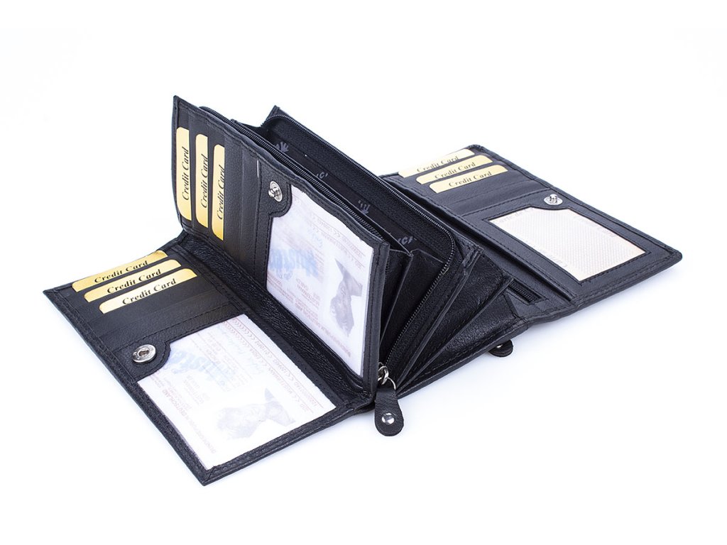 - uvnitř tohoto karetního oddělení jsou 2 velké přihrádky na doklady a 10 přihrádek na platební karty z nichž 2 jsou průhledné