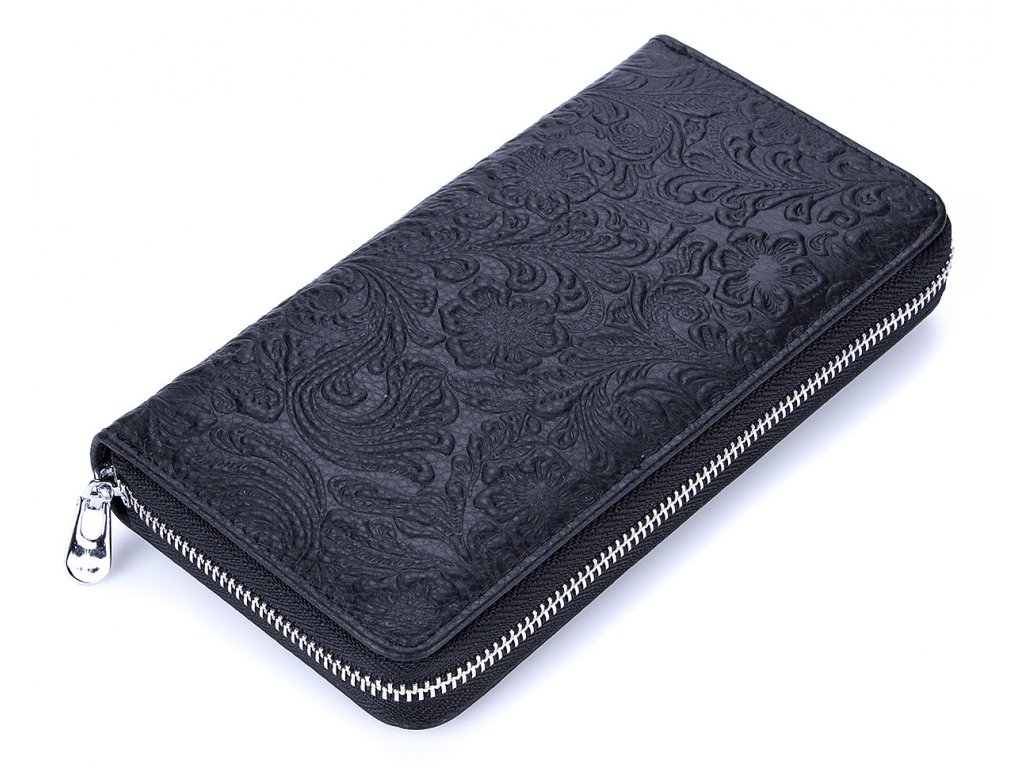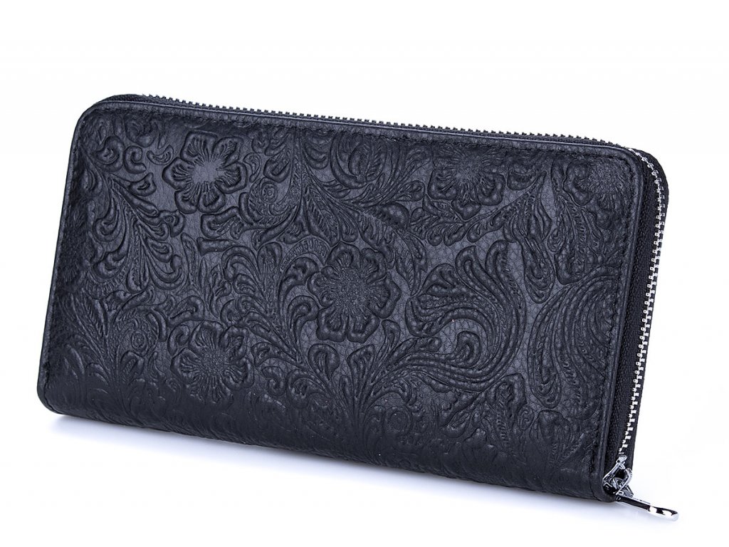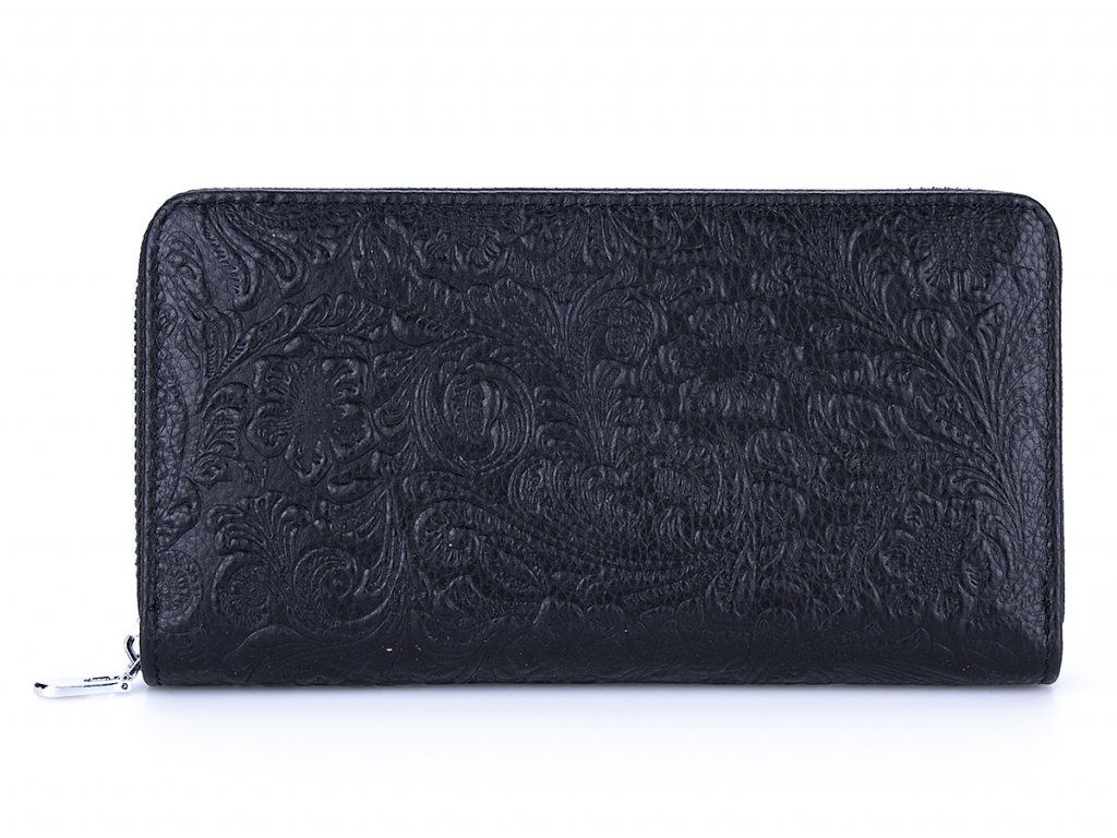 Velká dámská kožená peněženka na zip z kolekce Jennifer Jones černá. Oblíbený model velké dámské peněženky na zip. Peněženka je vyrobena z kvalitní přírodní kůže z vnější strany ražený květinový vzor. Tato peněženka je dostupná ve více barvách které naleznete ZDE.