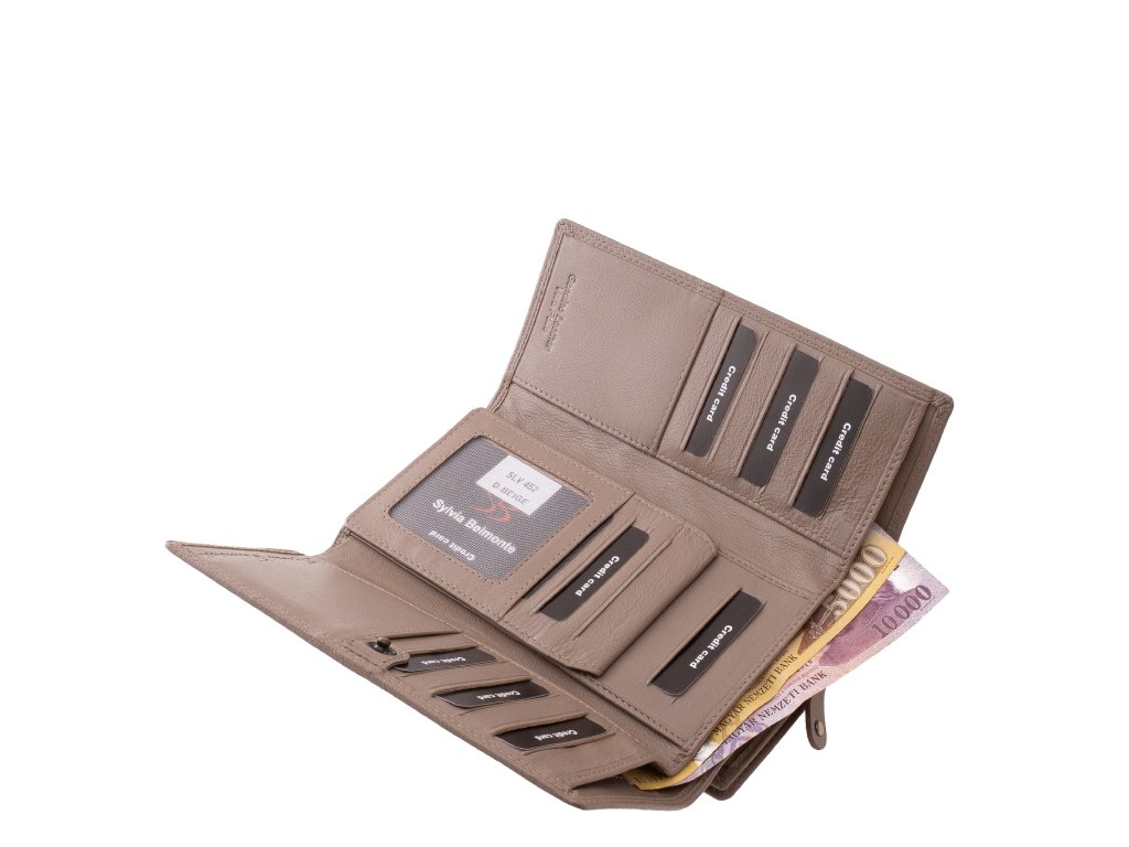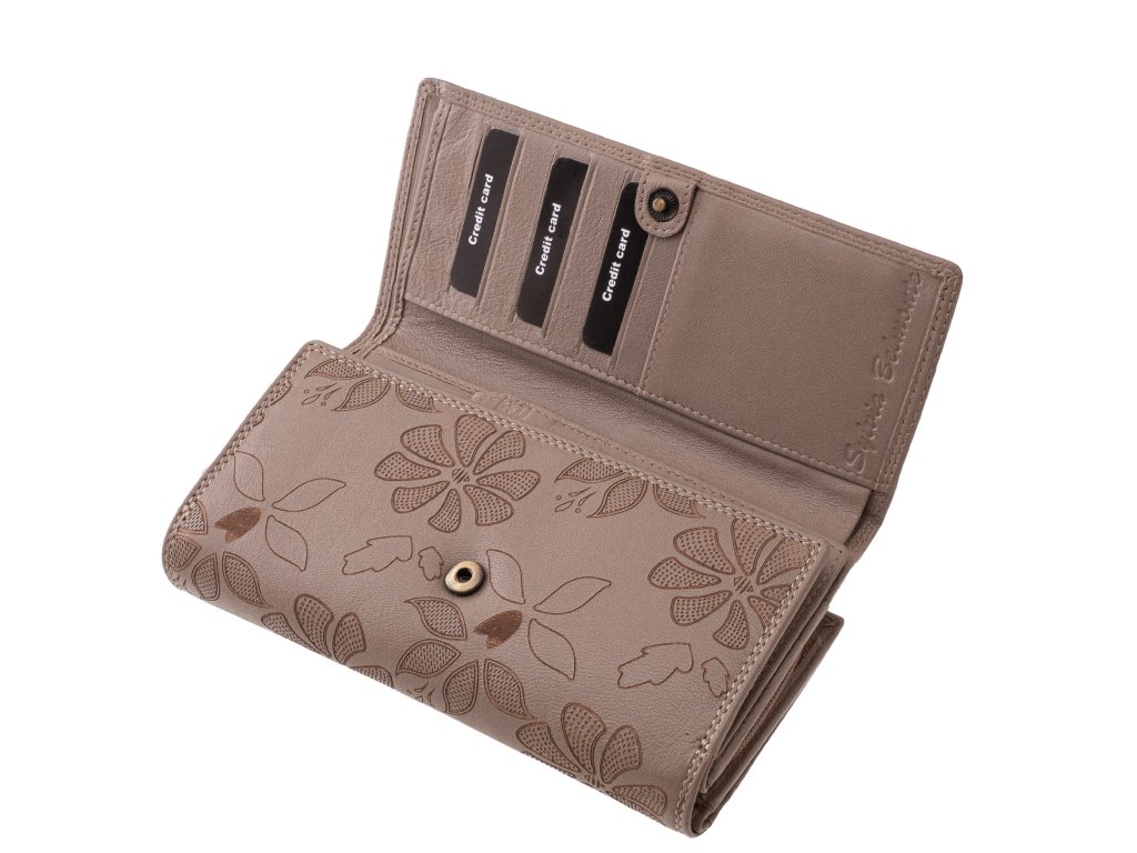Velká dámská peněženka z pravé kůže Sylvia Belmonte béžová. Tato značková dámská kožená peněženka kombinuje materiály prémiové kvality, módní laserem vyřezávaný květinový design a praktické vnitřní uspořádání. Je k dispozici v módních, trendy barvách, takže si každý může najít verzi, která nejlépe vyhovuje jeho stylu. Dostupné barevné varianty naleznete ZDE. Praktický design pro každodenní pohodlí. Dvojitá přepínací spona umožňuje bezpečné a flexibilní uzavření, i když je peněženka plná. Samostatná přihrádka na mince na zip – přihrádku na mince lze použít, aniž byste museli otevírat celou peněženku.