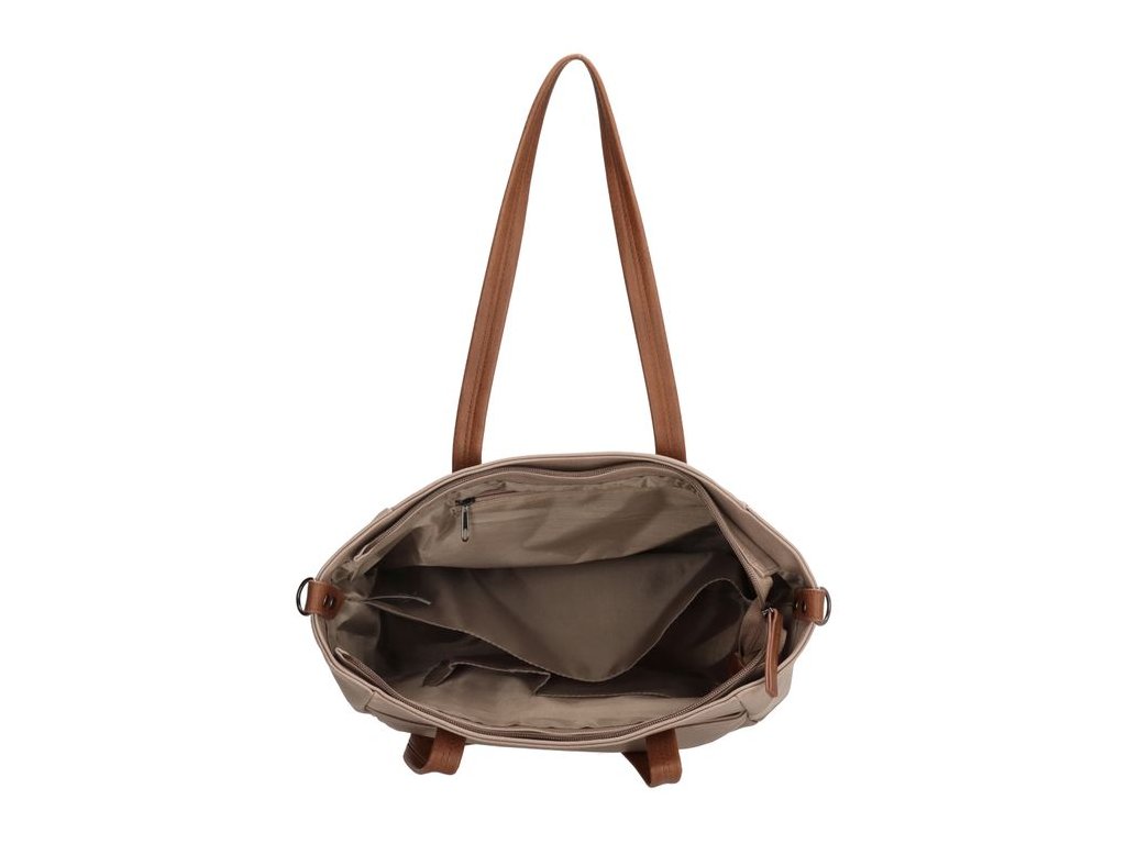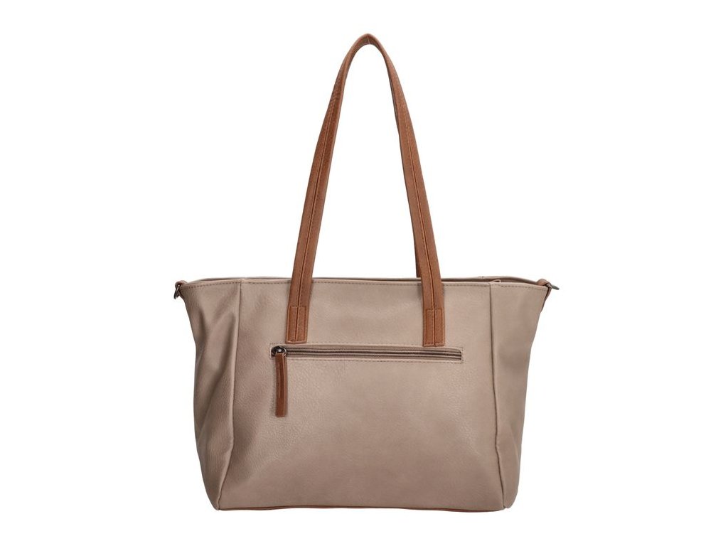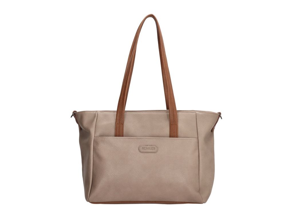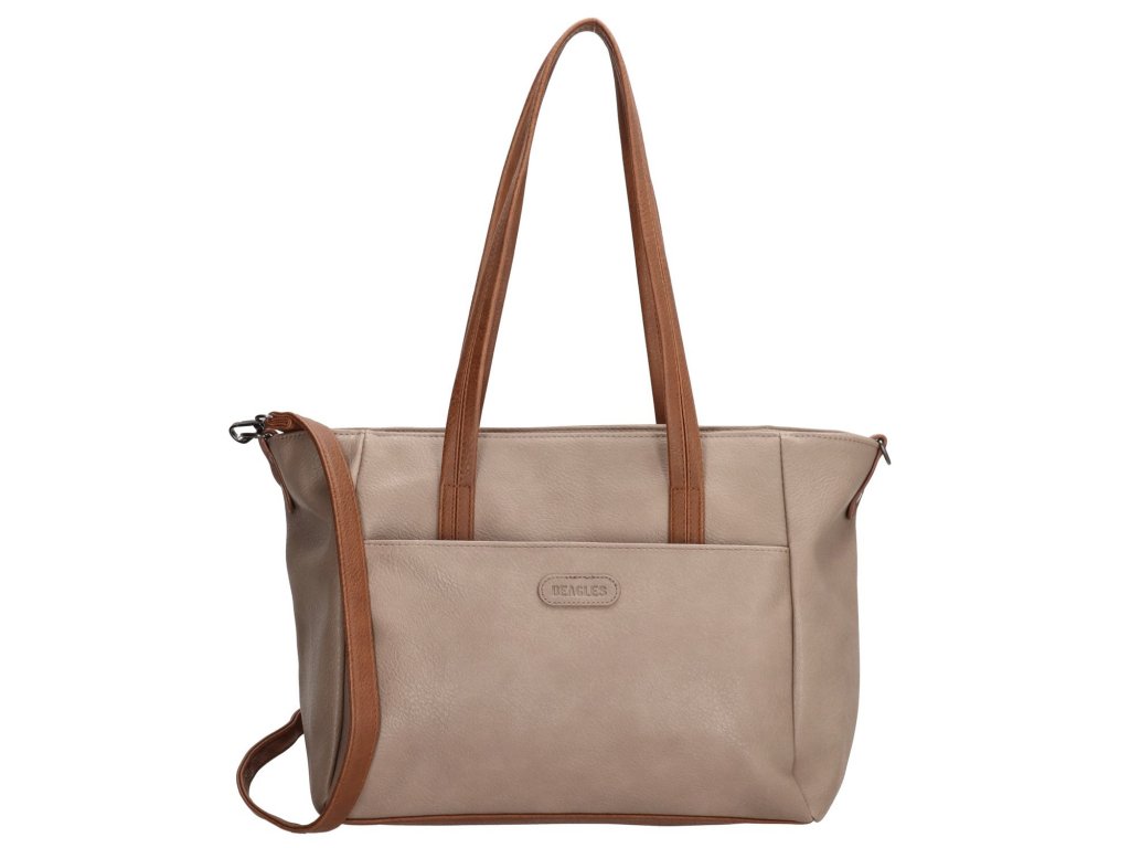 Kabelka do ruky a přes rameno béžová z kolekce Beagles. Kabelka je vyrobeno z kvalitní umělé kůže. Barevná kombinace béžová a hnědá barva. Dlouhá držadla a odnímatelný popruh přes rameno s nastavitelnou délkou.