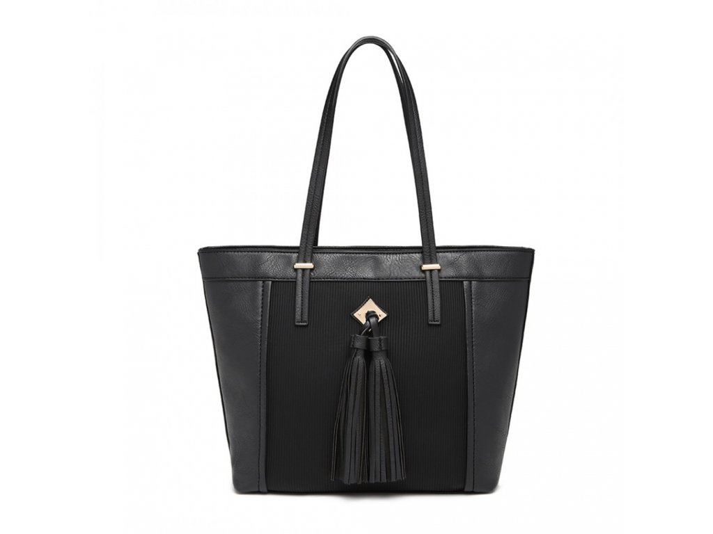 Stylová dámská kabelka do ruky a přes rameno Miss Lulu černá. Dlouhá držadla umožňují kabelku nosit na rameni, na předloktí nebo v ruce. Kvalitní umělá kůže. Kabelka je uzavřena zipem.