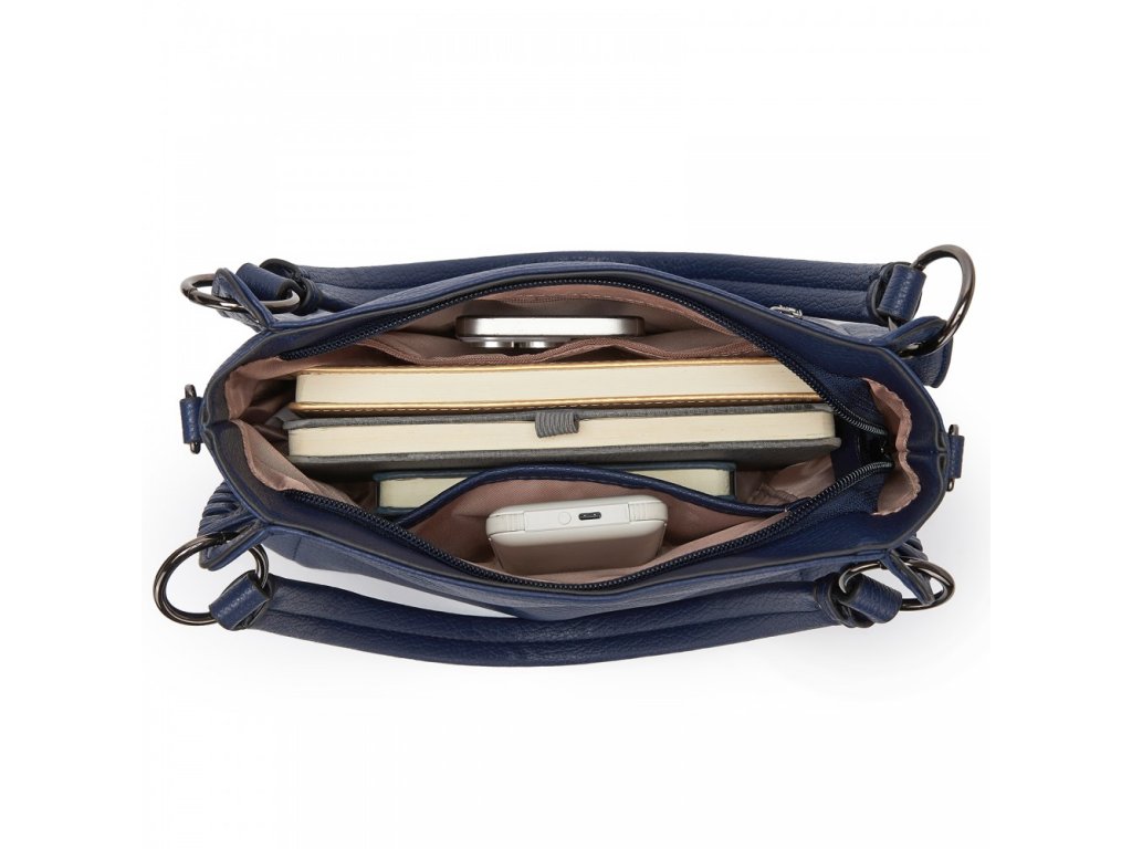 Elegantní středně velká kabelka do ruky a přes rameno modrá z kolekce Miss Lulu. Kvalitní umělé kůže s jemnou strukturou na povrchu. Kabelka je uzavřena zipem. Toto kabelku lze nostit v ruce nebo na rameni. Dlouhý odnímatelný poprush přes rameno je součástí. Tato kabelka přes rameno je dostupná ve více barvách které naleznete ZDE.