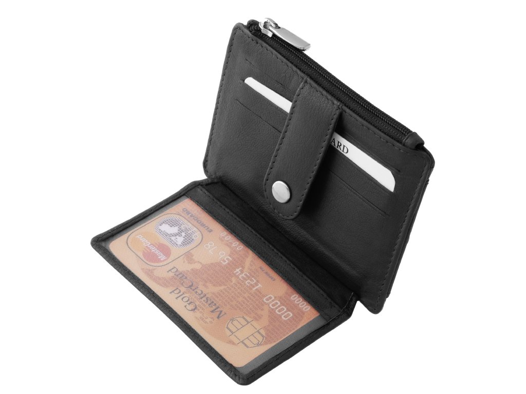 Kožené pouzdro na karty a peněženka na mince černá DG-71