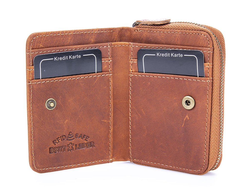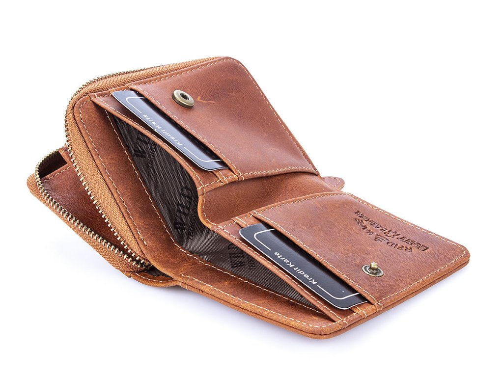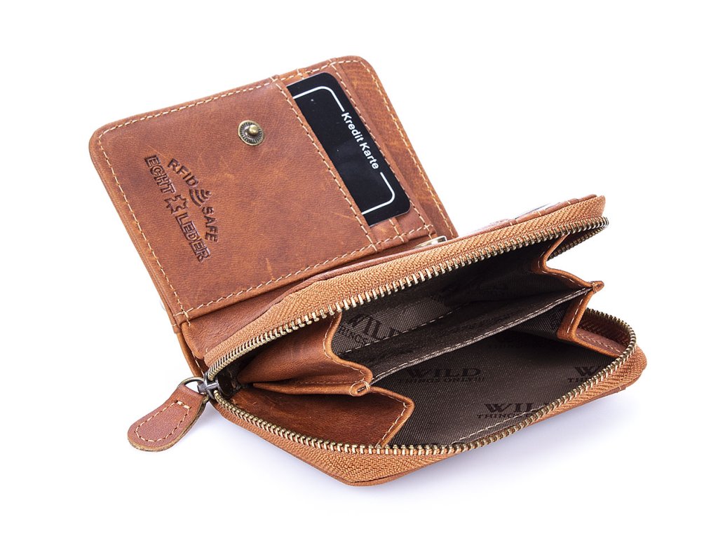 Malá pánská kožená peněženka na zip Wild světle hnědá. Kvalitní přírodní kůže. Přihrádka na mince na zip. Tato malá kožená peněženka je dostupná ve více barvách které naleznete ZDE. Ochrana RFID Secure.
