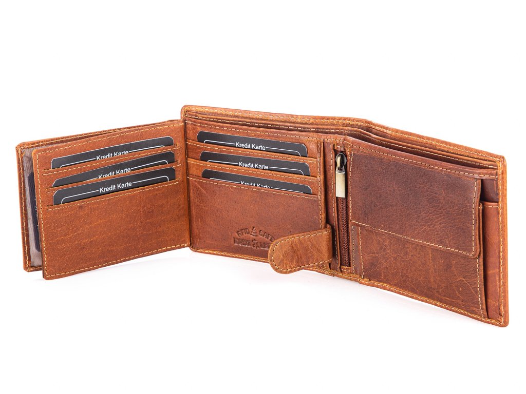 - 2 přihrádky na doklady přístupné ze střední části peněženky