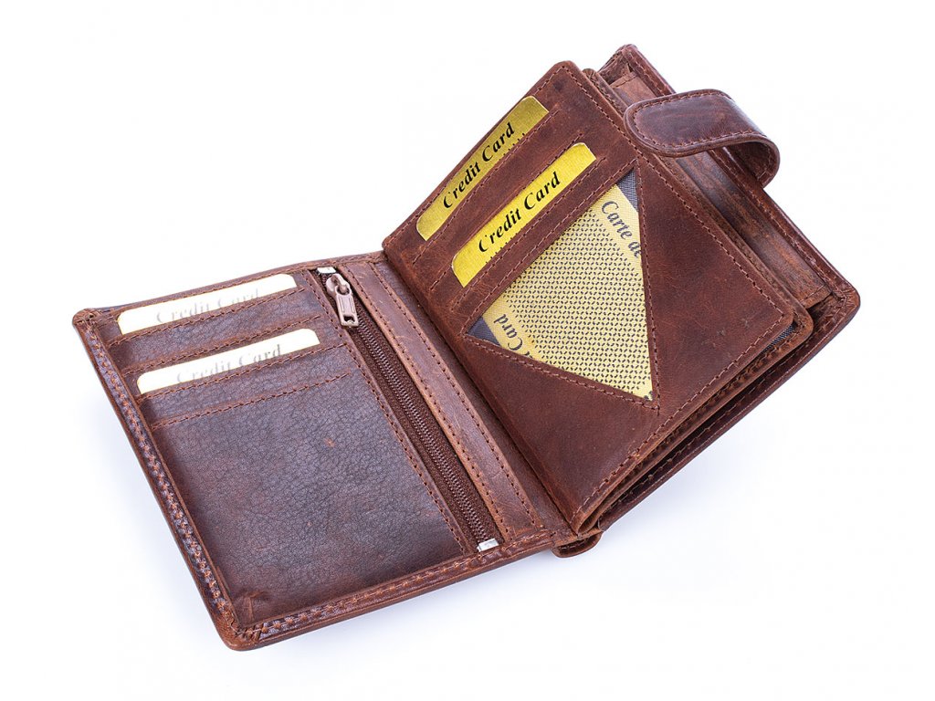 - 2 přihrádky na doklady přístupné ze střední části peněženky
