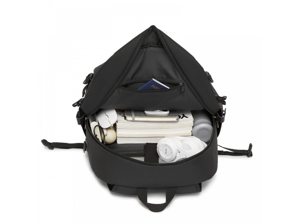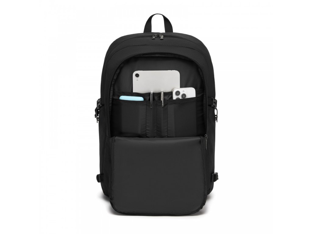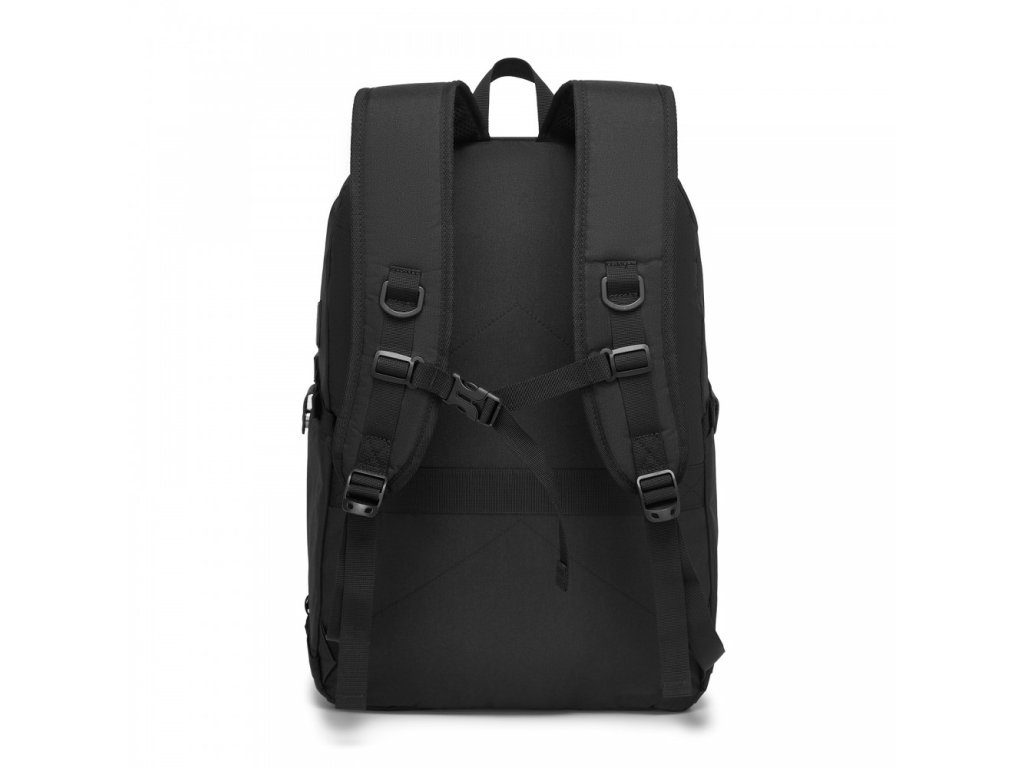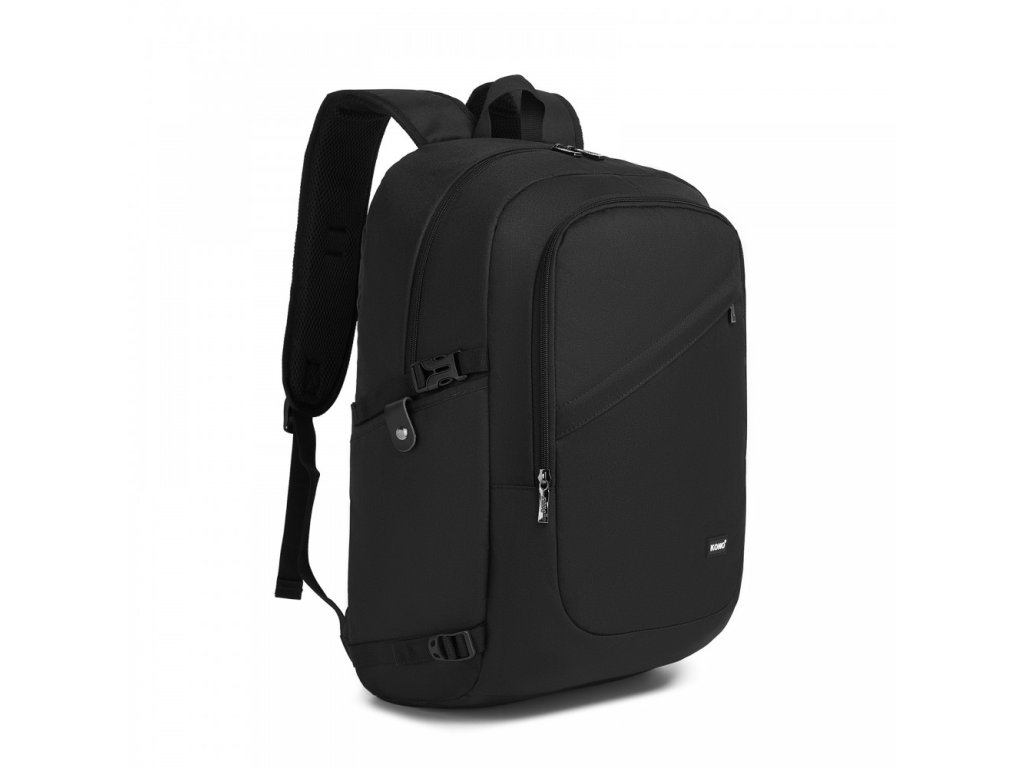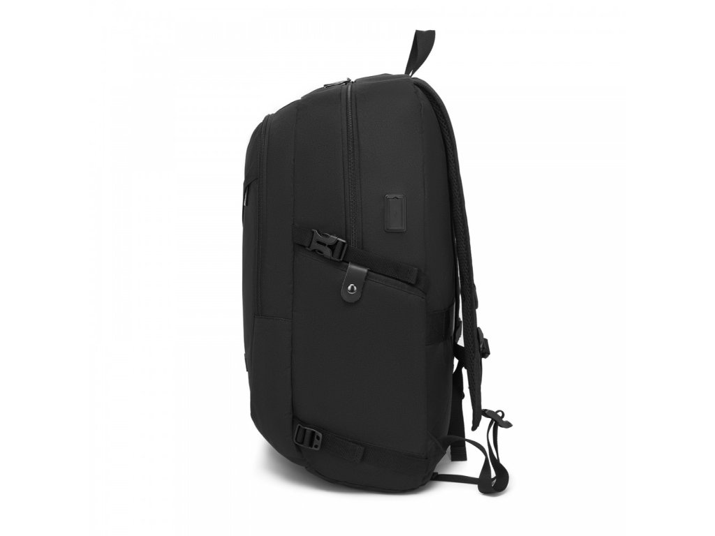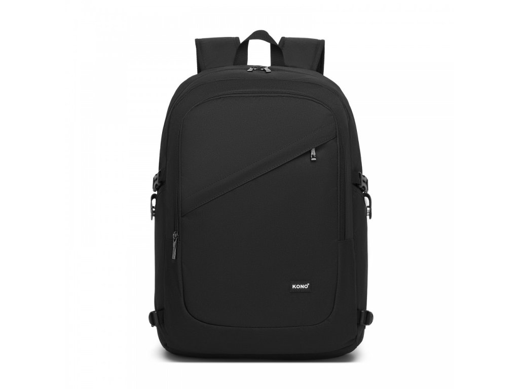 Moderní a prostorný městský batoh nejen na notebook s USB portem černý KONO. Kvalitní pevný materiál (nylon). Batoh vhodný pro každodenní použití.