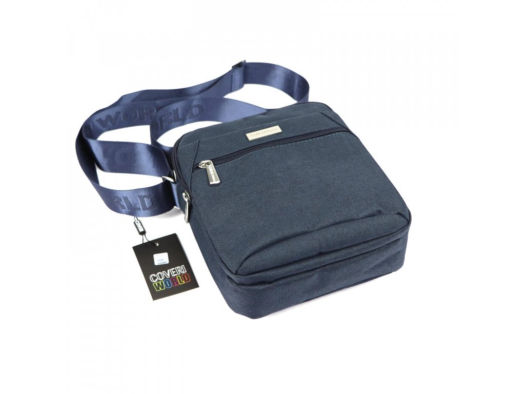 Středně velká pánská taška přes rameno Coveri World. Oblíbená velikost pánské tašky přes rameno. Tato pánská taška přes rameno je vyrobena z kvalitního pevného polyesteru. Dlouhý popruh přes rameno s nastavitelnou délkou.
