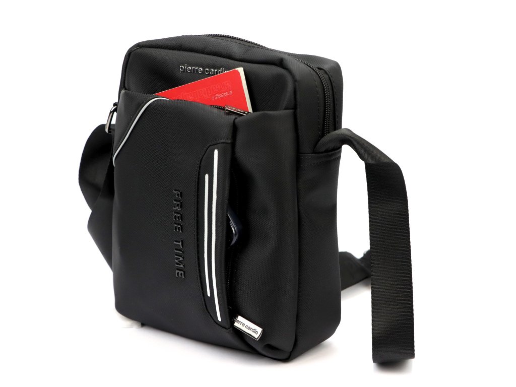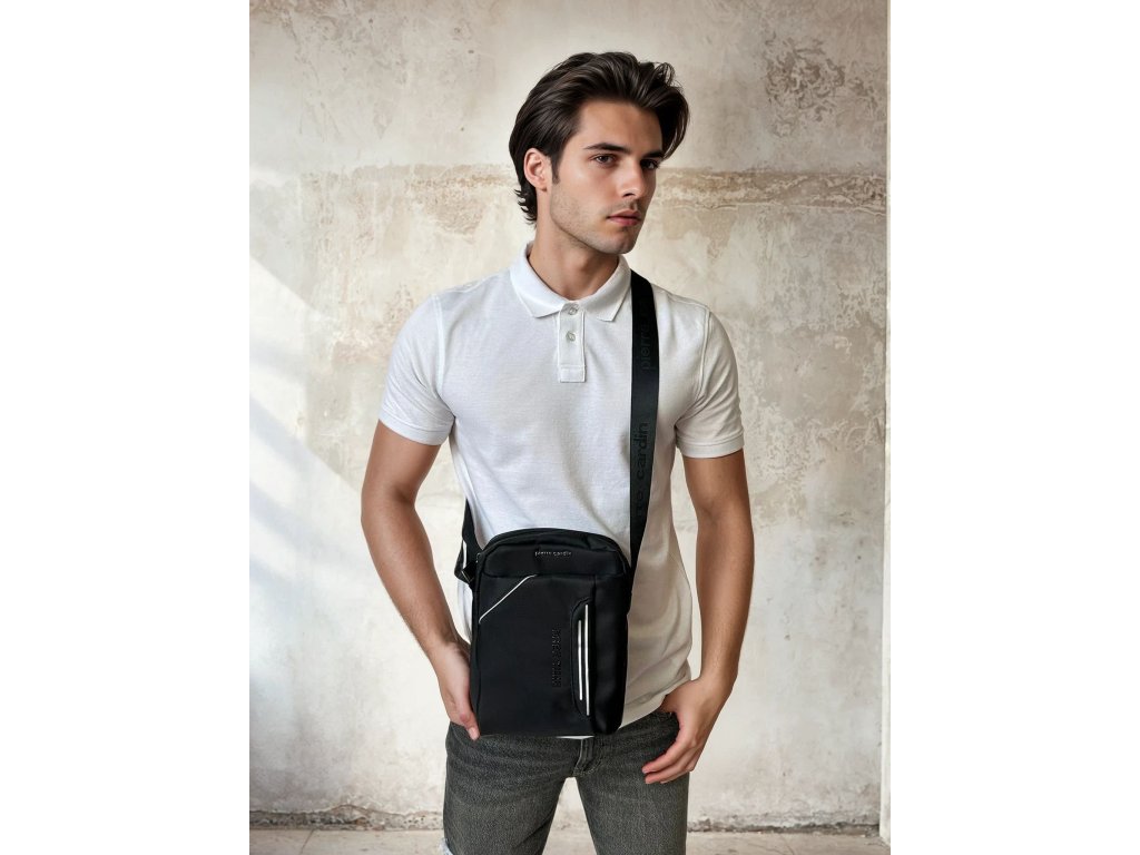 Prostorná pánská taška přes rameno Pierre Cardin černá. Oblíbená velikost pánské tašky přes rameno. Tato pánská taška přes rameno je vyrobena z kvalitního pevného polyesteru. Spousta úložného prostoru. Dlouhý popruh přes rameno s nastavitelnou délkou.